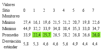Tabla 5 Resumen de los valores estimados de PM2.5 por sitio
