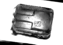 El proceso de experimentación consistió en introducir el micro robot en la arena y efectuar pruebas de movimiento a través de la inyección de la corriente necesaria para obtener un campo magnético y gradiente máximo de 8 mT y 0.6 T/A respectivamente, generando el torque y la fuerza magnética necesaria para el desplazamiento controlado del micro robot. La cámara realiza registros (fotos) 100 veces por segundo, similares al mostrado en la figura 3, que son almacenados en el PC. Dichos registros son posteriormente analizados con el fin de determinar las velocidades alcanzadas por el micro robot, a través de un algoritmo de imagen utilizando MatLab®. Esta variable fue utilizada para comparar la respuesta obtenida en el modelo de simulación.