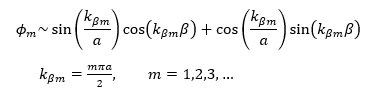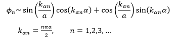 , recordando que el potencial exterior es infinito, luego la función de onda debe anularse en la frontera de la estructura, lo cual conlleva a las dos ecuaciones