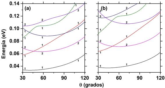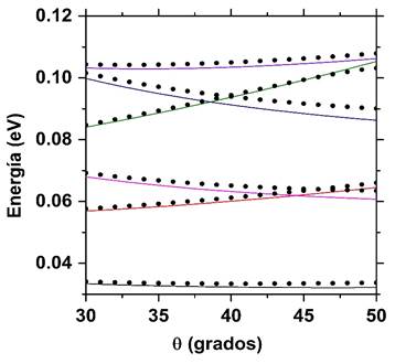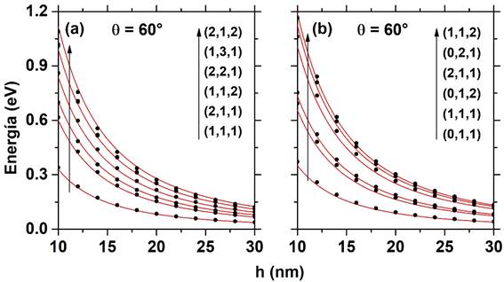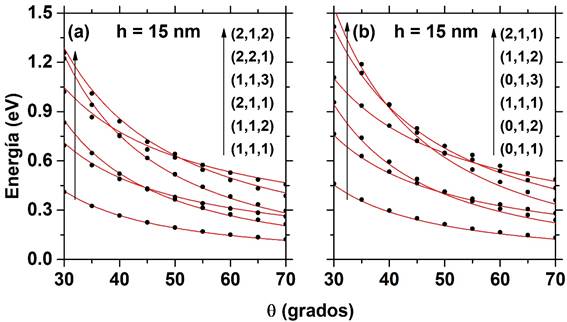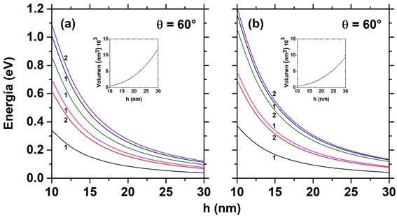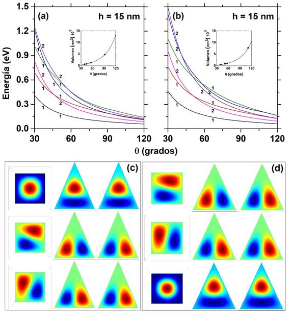 considerando ángulos pequeños para los puntos cuánticos piramidal y cónico de