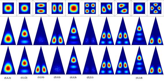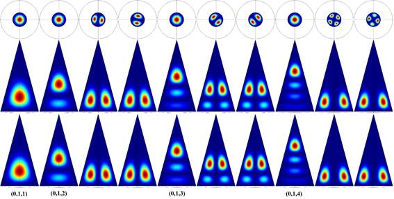 Keywords: Pyramidal quantum dot, Conical quantum dot, Quasi-analytical aproximation, GaAs, Finite elements.