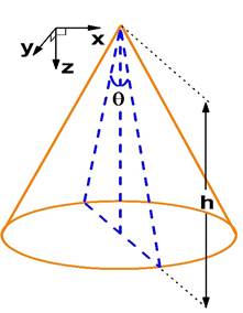 , posteriormente y aprovechando la simetría de la estructura cónica es posible reescribir el problema por medio de coordenadas cilíndricas como: