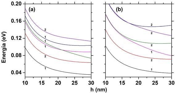 ambas soluciones para todos los estados a medida que se aumenta la altura de la