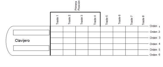Primera Posición de un instrumento de cuerda pulsada.