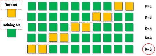 Ejemplo de Validación Cruzada para k=5, (Cortés Osorio n.d.).