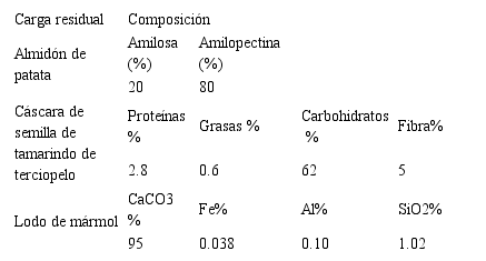 2 Método de obtención y tratamiento para cada una de las cargas residuales.Luego de conocer el proceso de obtención y tratamiento de las cargas se pueden analizar sus respectivas características y composición, que le confieren a los materiales un determinado comportamiento frente a su procesabilidad y propiedades finales del compuesto.