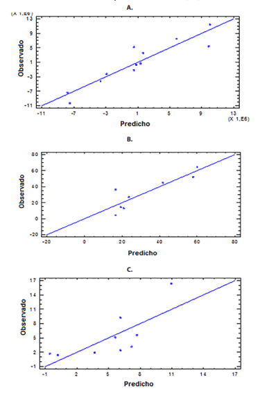 Una vez efectuado el estudio de sensibilidad, se procedió a determinar la correlación estadística existente entre las 3 variables de entrada consideradas y los 3 indicadores económicos de salida evaluados, con el objetivo de obtener correlaciones o ecuaciones que describan, de forma cuantitativa, la relación estadística existente entre estas variables. Lo anterior se efectuó mediante el empleo de la opción “Multiple Regression” contenida en el paquete estadístico Statgraphics Centurion.
