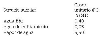 La siguiente tabla (Tabla 3) muestra el costo del equipamiento utilizado en el proceso productivo (Peters et al., 2003; Towler & Sinnott, 2008, Perry & Green, 2008).