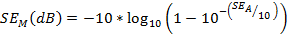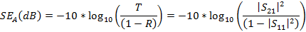 Este tipo de parámetros son utilizados habitualmente para conocer la efectividad de apantallamiento electromagnético o SE “Shielding Effectiveness” a través de las potencias electromagnéticas incidentes y transmitidas en determinado medio. En este sentido, es posible descomponer la SE en tres (3) tipos de pérdidas de energía (reflexión, absorción y múltiples reflexiones), las cuales habitualmente están presentes en una condición de frontera dada entre dos medios distintos. La definición de la SE es presentada en la ecuación (9)Saini, et al. (2009); Choudhary, Dhawan and Saini. (2012); Singh, et al. (2012); Saini, et al. (2011); Anoop, et al. (2011); Kim, et al. (2004).