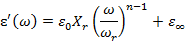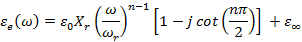 ) se elige arbitrariamente en un rango cualquiera que depende únicamente de la curva de dispersión del material que se quiera modelar matemáticamente. Esta curva de dispersión se obtiene evaluando la permitividad dieléctrica absoluta en función de la frecuencia del campo eléctrico incidente. De esta manera, remplazando la ecuación (3) en la ecuación (2) se obtiene en la ecuación (5) la permitividad dieléctrica compleja absoluta según el modelo de Jonscher.
