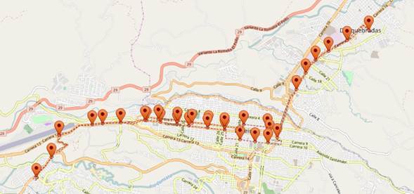 1. El sistema está compuesto por las rutas 2 y 3 del sistema BRT Megabus en Pereira