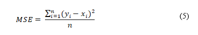· Error Medio Cuadrático (MSE)Donde, n corresponde a la cantidad de registros, yi es el valor de predicción y xi corresponde al valor verdadero.