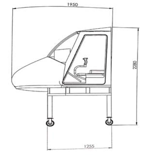 El simulador como se puede ver en la figura 4, está construido en Hierro, Acero, Aluminio, fibra de vidrio y otros materiales que lo hacen fuerte, resistente y se logra alcanzar unos excelentes acabado; además, permite garantizar la vida del mismo. De igual modo, las ventanas están simuladas en aleaciones de polímeros, logrando con ello gran realismo y resistencia en la pieza simulada.