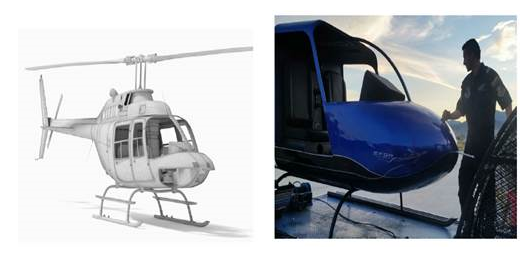 a. Cabina Nissi 001: la cual fue rediseñada teniendo en cuenta las dimensiones reales del helicóptero Bell 206 BIII.