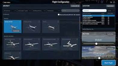 En el caso del programa seleccionado es el XPLANE 11 como software de simulación (ver figura 5); el cual, para iniciar nuestro primer vuelo, se ubica desde donde quiere iniciar el vuelo, meteorología que quiere contar para el vuelo, hora y estación actual, misiones, multijugador, historial del piloto, centro de instrucción, configuraciones (ver figura 6).