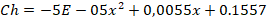 (12)Para la humedad en el patrón uno se utilizó la ecuación polinómica de tercer grado, en la corrección en humedad 11 %hr y 80 %hr, se encontró la (13). De este modo para el patrón dos la corrección de humedad entre 11 %hr y 45 %hr se encontró la (14). La corrección en humedad entre 45 %hr y 80 %hr en el patrón dos es la (15)