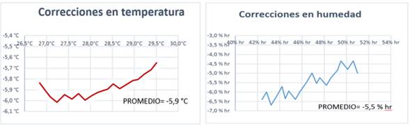 En las Fig.8 se muestran los gráficos de corrección aplicados en temperatura y humedad respectivamente.