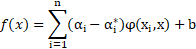 La función de predicción se puede formular en términos de los multiplicadores de Lagrange y la función del kernel como: