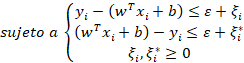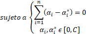es la constante de costo, cuya función es encontrar un punto de equilibrio entre la complejidad del modelo y el valor más alto de Smola and Scholkopf. (2004). Usando la formulación dual a través de multiplicadores de Lagrange, la SVR puede extenderse para funciones no lineales, en este sentido el problema de optimización se define sólo en términos del multiplicador de Lagrange