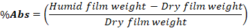 The test was performed under ASTM-D570, where the dry films were immersed in approximately 20mL of distilled water for 30min and then weighed again to determine the amount of water absorbed. The percentage of absorbed water is calculated according to equation 2.