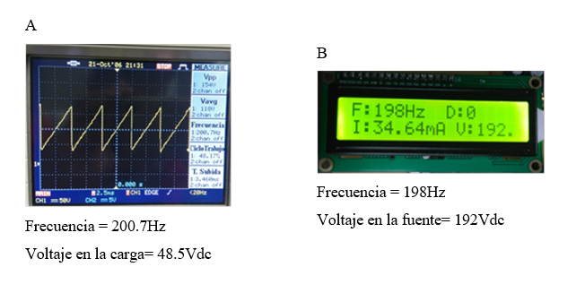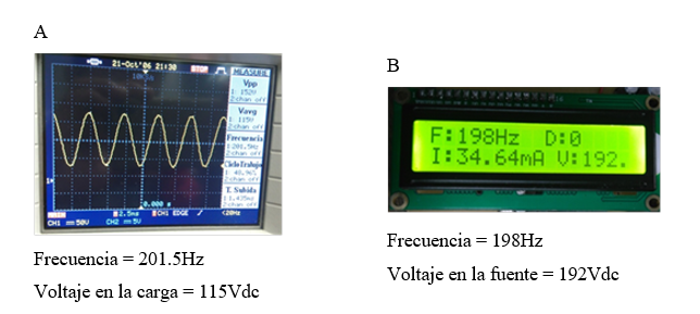 Las figuras 5 a 8 presenta las imágenes registradas por el osciloscopio y pantalla LCD para diferentes formas de onda, voltajes, frecuencias y ciclos de dureza