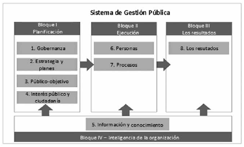 En 2014, el Gespública pasó por reformulaciones con la redistribución de la puntuación de algunos de los criterios de evaluación. El modelo completo del cuestionario permanece con un total de 1.000 puntos posibles. El referido modelo de excelencia de la gestión pública no presentó enmiendas, permaneciendo con los siguientes componentes: gobernanza, estrategia y planes, público-objetivo, interés público y ciudadanía; información y conocimiento; personas, procesos y resultados, los cuales están dispuestos en la Figura 1 (Gespública, 2014).