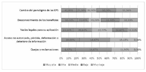 Igualmente, en la Gráfica 1 se observa que entre las principales barreras para incorporar la telemedicina en las instituciones de salud colombiana, se encuentra que tienen mayor protagonismo aquellas relacionadas con el desconocimiento de los beneficios telemédicos, los cambios de paradigma de las EPS, el acceso no autorizado a la información del paciente y la pérdida, deformación o deterioro de la historia clínica (MinSalud, 2016).