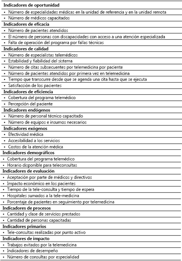 Otros indicadores más son: proporción de consentimientos informados adecuadamente diligenciados, medición del entendimiento del paciente del consentimiento informado, número de visitas a consultas externas o visitas domiciliarias, número de seguimientos realizados al paciente después del alta y número de teleconsultas realizadas y consultas de especialidad por telemedicina (Ley 1448, 2006; Ley 1122, 2007).