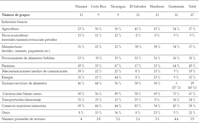 En Costa Rica, la presencia de grupos empresariales en la agricultura también ha tenido un perfil más diversificado, pues abarca desde ganado vacuno y frutas tropicales hasta ganado porcino y palma africana. Por su parte, el bajo porcentaje de grupos participantes en la agricultura en Honduras refleja el hecho de que las élites económicas locales nunca fueron tan fuertes en ese sector; lo cual se debe a que las propiedades cafetaleras siempre han estado dispersas y las plantaciones bananeras eran fundamentalmente propiedades extranjeras. Se puede decir lo mismo de la economía más orientada a los servicios de Panamá, en la cual la agricultura y la manufactura nunca fueron la principal actividad de las élites locales (Zimbalist y Weeks, 1991).