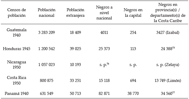 Entre otras cosas, mediante la Tabla 2 interesa destacar, en primer lugar, cómo la cantidad de negros a nivel nacional llega a alcanzar siquiera el 10 % de la población nacional, a excepción de Panamá, a propósito del ferrocarril, primero, y del Canal, después. En segundo lugar, la cantidad de extranjeros siempre supera a la de negros a nivel nacional, a excepción nuevamente de Panamá; lo cual también representa un dato significativo con relación a la cantidad de afrocentroamericanos inscritos en las diferentes nacionalidades; si se contrasta con el resto de los demás extranjeros en cada país. En tercer lugar, otra vez a excepción de Panamá y a diferencia de lo señalado en la prensa escrita de la época, la cantidad de negros presentes en la capital de los distintos países era realmente ínfima. Por último, Panamá vuelve a ser la excepción, pero para todos los demás, se evidencia que la mayor cantidad de negros en cada país, se encontraban ubicados en las provincias o departamentos de la costa Caribe centroamericana.