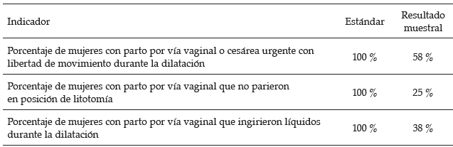 Los resultados de esta investigación exploratoria hablan de un cumplimiento claramente insatisfactorio de las recomendaciones para los cuidados al parto emitidas por la Declaración de Fortaleza en 1985 y por la OMS en 1996. De los 11 indicadores analizados, solo uno se cumplió satisfactoriamente y solo dos presentaron un desfase entre el estándar y el valor muestral menor al 25 por ciento.