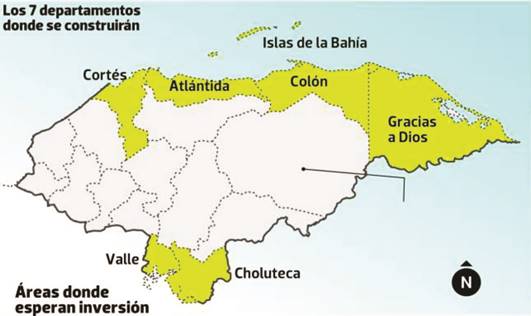 Las ZEDE a ejecutarse se desarrollarán en los siete departamentos de los litorales del Atlántico y Pacífico (Figura 11), esta localización geográfica es parte de satisfacer la necesidad de estar conectados a través de rutas no solo terrestres, sino también marítimas para sus actividades de conexión internacional. A la vez, el único indicador que maneja la Secretaria de Desarrollo Económico (SDE) para mostrar el impacto de esta política de enclave es “la generación de 200,000 empleos a lo largo de varios años” (Redacción, 2017). Como ya se explicó anteriormente, esta es una estrategia para desplazar los indicadores de medición, con el fin de verificar si estas ciudades modelo alcanzan o no el desarrollo económico prometido (el cual requiere mayor inversión de recursos y tiempo) y sustituirlos por un simple indicador de medición de puestos de empleo generados, lo cual es mucho más fácil de producir y cuantificar sin tomar en cuenta si estos son de calidad o no, si son temporales o permanentes, si ofrecen los derechos laborales respectivos, o bien, si pagan el salario mínimo o menos.