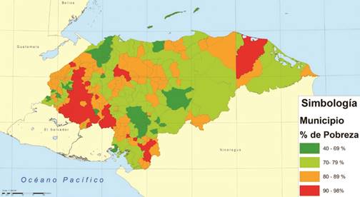 Al comparar la localización de las ZEDE con la ubicación de los municipios más pobres o con mayor índice de pobreza (Figura 12), se descubre que las ZEDE no se instalarán en los departamentos donde se concentra la peor pobreza del país, es decir, donde son más necesarias. Dichos departamentos son Lempira, Intibucá, La Paz, entre otros. A la vez, se puede apreciar que las ubicaciones de las ZEDE son exactamente las mismas de las RED, lo cual nos demuestra la carencia de estudios innovadores o sociales que busquen tener un verdadero impacto en la reducción de la pobreza del país con esta política concesionaria.
