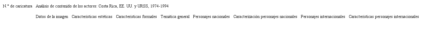 Para el presente análisis solamente se tomaron en cuenta personajes vinculados con política exterior del país: como ministros y presidentes. Debe mencionarse que Óscar Arias, presidente entre 1986-1990 y Rafael Ángel Calderón Fournier presidente entre 1900-1994, no son representados con relación a lo que sucede en Nicaragua.