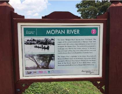 El letrero en la orilla del río (Figura 1), que explica la historia fundacional de Benque y su topografía, no hace ninguna mención al pueblo maya. Los dibujos que acompañan el texto hacen referencia a la vida pasada colonial, y a un pueblo vinculada a la explotación de madera. Solamente se refiere al río que origina en las “montañas mayas”. El pueblo maya es invisible. Por un lado, hubo un impulso hacia ciertas políticas de visibilidad étnica, pero por el otro, seguían las omisiones.