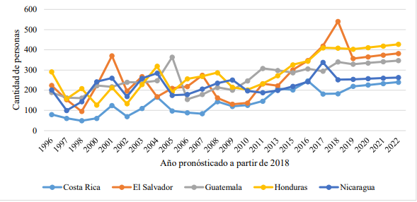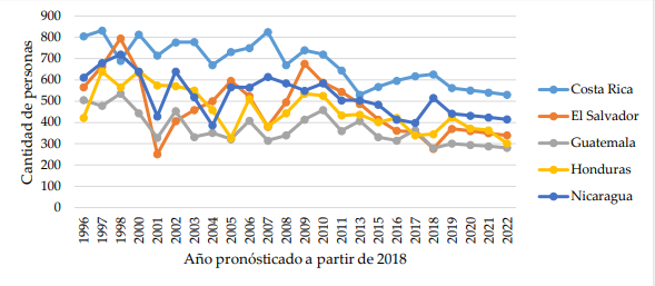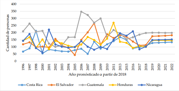 Según los pronósticos que se presentan en la Figura 7, Costa Rica registraría un comportamiento constante hacia la baja y en 2022 alcanzaría la segunda más significativa respecto a su confianza hacia la democracia desde 1996. El extremo se desarrollaría si el gobierno de Carlos Alvarado y Epsy Campbell no lograra responder a la insatisfacción social que impuso el viejo bipartidismo, lo cual estaba sucediendo antes de la pandemia. Según los datos del Centro de Investigación y Estudios Políticos (CIEP) de la Universidad de Costa Rica, en noviembre de 2019 el 59 % de los encuestados lo desaprobaban y únicamente el 22 % lo aprobaban.