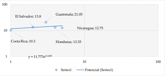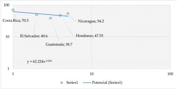 Como podemos observar en las figuras 4, 5 y 6 a una escala logarítmica, Costa Rica y Nicaragua, en un sentido estrictamente normativo, tienen las actitudes políticas más democráticas. El 70,5 % y el 54,2 % de los encuestados prefiere la democracia sobre cualquier otra forma de gobierno; el 12,75 % y el 21,75 % mantiene una actitud escéptica y únicamente el 10,3 % y el 12,75 % de los encuestados preferiría un gobierno autoritario según las circunstancias. Les siguen relativamente cerca El Salvador y Honduras con el 49,6 % y el 47,55 % en las valoraciones positivas, en las neutrales con el 24,35 % y el 25,5 % y en las negativas con 13,8 % y el 13,35 %. Por último, Guatemala reporta las valoraciones menos democráticas, únicamente el 38,7 % de los encuestados prioriza la democracia, el 24,45 % tiene una actitud neutral y el 21,05 % preferiría el autoritarismo.