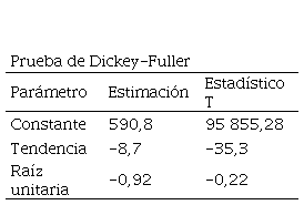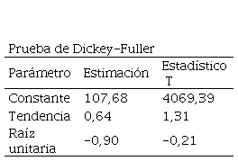 A continuación, en las tablas 1, 2 y 3 se presentan los resultados obtenidos a partir de la aplicación de la Prueba Dickey-Fuller a los tres ítems analizados en este artículo: