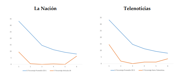 Es importante señalar que el presente estudio compara la cobertura entre un diario y un telenoticiero y se sabe que ambos medios no producen los mismos efectos. Existen diversas investigaciones que sugieren que los efectos de agenda-setting de los medios impresos son más fuertes que los de la televisión. Sin embargo, los resultados han sido inconclusos (Wanta; Ghanem et al.), por lo que no se les dará un tratamiento diferenciado.