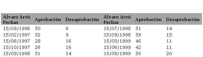La estimación de que el candidato presidencial del oficialismo en 1999, Oscar Berger, contaba a su favor con la percepción ciudadana favorable del desempeño del mandatario de turno Álvaro Arzú, probablemente resulta engañosa. El enorme universo de no respuesta pudo perfectamente contener una desaprobación presidencial oculta significativa o una magnitud considerable de indecisos potencialmente capaces de inclinarse en contra de la candidatura oficialista bajo los efectos de la campaña electoral. Los resultados electorales que evidenciaron un triunfo abrumador del candidato opositor ponen de manifiesto que la interpretación que sugerimos es perfectamente razonable.