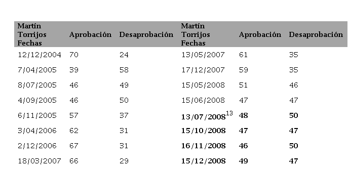 Las mediciones de la popularidad del mandatario de turno realizadas entre junio y diciembre de 2008 corresponden a un ejecutivo sobre cuya gestión la percepción ciudadana se encuentra dividida en partes iguales. Cuando la percepción del desempeño ciudadano de un presidente se encuentra dividida en partes equivalentes no es posible considerar que el titular del ejecutivo se encuentra evaluado satisfactoria o insatisfactoriamente. Más bien, la percepción ciudadana refleja un empate técnico desde la que resulta injustificado realizar una inferencia fiable sobre cuán favorable o desfavorable será la transferencia de su popularidad en caudal de votos para el candidato presidencial de su partido o coalición.