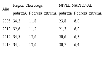 Este comportamiento de los porcentajes mostrados evidencia que en la región Chorotega la población sufre altos niveles de pobreza de manera persistente en el tiempo.
