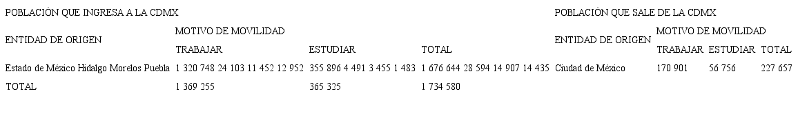 El fuerte dinamismo económico de la cdmx se refleja en la aportación que hace al Producto Interno Bruto (pib) nacional, ocupando el primer lugar con respecto a las demás entidades federativas. En ese contexto, el transporte constituye una necesidad colectiva y un elemento central en el funcionamiento de esta ciudad, ya que además resulta ser un centro de atracción y de expulsión de población. Como referente de los desplazamientos, se presentan los siguientes datos cuya base es la Encuesta Intercensal realizada en 2015 por el inegi.