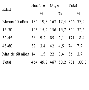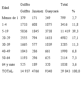 DISTRIBUCIÓN TOTAL Y PORCENTUAL DE LA POBLACIÓN POR SEXO Y GRUPOS DE EDADGOLFITO, 1984