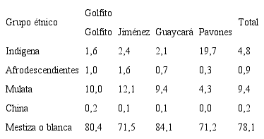 A nivel étnico, en el censo del 2011 se caracteriza a la población golfiteña según se muestra en la tabla 16.