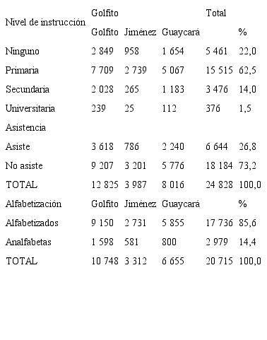 En lo referente a la composición educativa de esta población, en la tabla 17 se observan los datos referidos al nivel de instrucción, asistencia a centros educativos formales y alfabetización según el Censo de 1984.