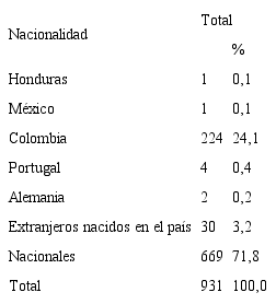 República de Costa Rica, 1864 (Cuadro viii. A, Cuadro xii).Un análisis de los datos de las tablas 2 y 3 muestra la paridad entre hombres y mujeres. Por edades, el mayor peso está en la población joven, pues las personas menores de 30 años son casi el 70% de la población total. Esto puede dar algunas pistas sobre el modelo económico que se va a desarrollar en esta zona durante el siglo xix, al ser una zona de atracción de colonos y agricultores en busca de tierras, quienes generalmente se desplazan en edades productivas y en grupos familiares. En lo referente a nacionalidades, se destaca la presencia de colombianos, con casi un cuarto de la población del distrito. Estos se presume vienen de Chiriquí y en general de Panamá, en ese momento provincia colombiana.
