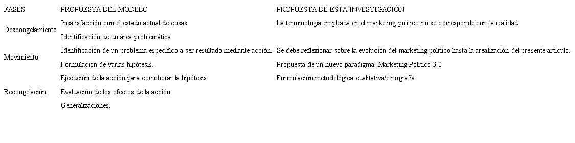 Para responder a esta pregunta, primero se comprobó que esta investigación se ajustara al modelo propuesto por el padre de la Investigación Acción, Kurt Lewin (Gómez, 2010) y se descubrió que este proyecto podría cubrir cada una de sus fases y su propuesta de modelo (cuadro 1).