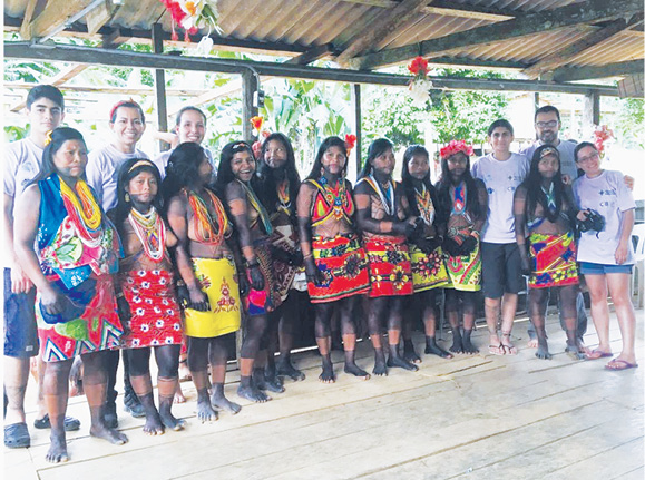 El diplomado es ejecutado principalmente por estudiantes del pregrado de medicina con el acompañamiento de docentes de la misma facultad y voluntarios de alguna de las entidades patrocinadoras del grupo Piraguas, los cuales se desplazan hacia los resguardos indígenas con el objetivo de que el aislamiento geográfico no sea un obstáculo para transformar la vida de los integrantes de dichas comunidades que se benefician de esta iniciativa educativa (fotografía 3). Estas comunidades se ubican en territorio selvático, alejadas de la cabecera municipal y, para llegar allí, es necesario el transporte fluvial y el acompañamiento de algunos miembros de la comunidad.
