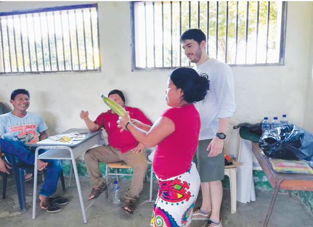 Integrante del grupo Piraguas en actividad educativa en una comunidad indígena Embera del Chocó, Colombia